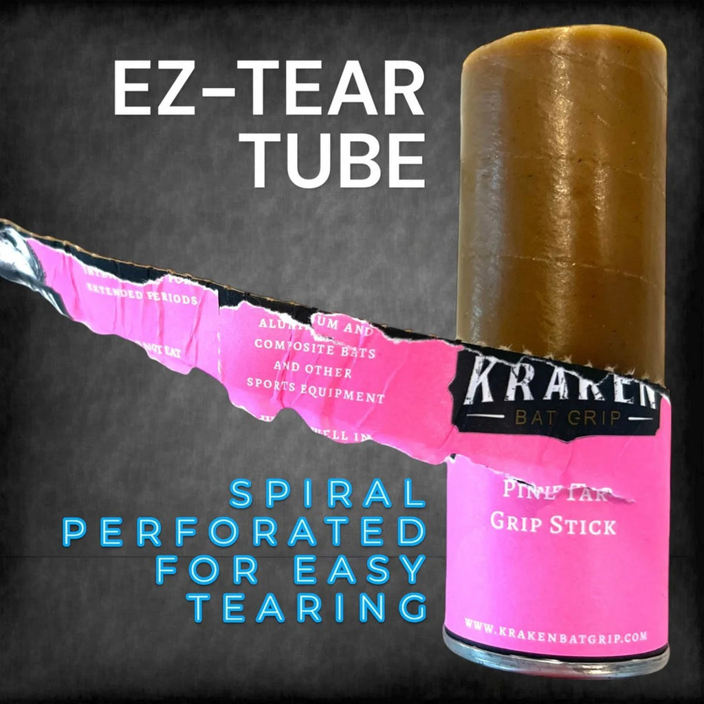 For those that want the world's best pine tar in a traditional paper tube but hate struggling to get it to tear just right, we created our EZ-Tear paper tube... the only paper tube that is spiral perforated the entire length of the stick for easy tearing. Like all our grip sticks, comes with a Kraken pop-top carry case at no extra cost. No more lame plastic baggies to protect your stick and baseball gear.