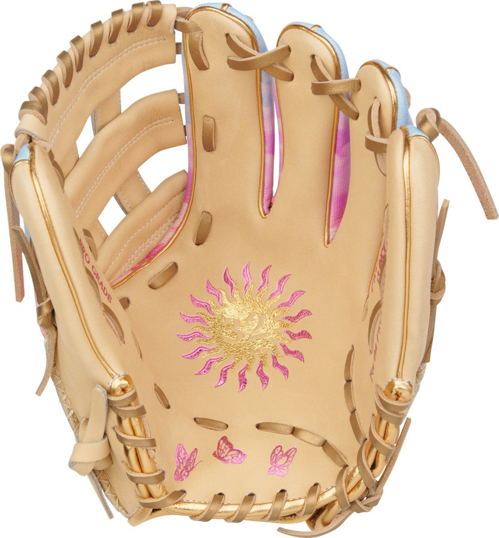The Rawlings Sierra Romero Pro Series Infield Glove brings together elite performance and powerful personal meaning in one unforgettable glove. Designed in collaboration with Sierra Romero, this glove pays tribute to her late father and the values he instilled hard work, peace, and unconditional love. Crafted in a versatile 12-inch infield pattern, this glove features a Pro H Web for quick transfers and confident ball handling. The camel leather shell provides a classic, clean look, while the soft metallic accents and sun stamp in the palm symbolize strength, clarity, and warmth through adversity. Built to perform at the highest level, this glove is also constructed with a lightweight frame and pull lace wrist, making it game-ready out of the box with minimal break-in required. Whether you're honoring your roots or chasing your dreams, the Sierra Romero glove delivers the tools and the inspiration to do it all.