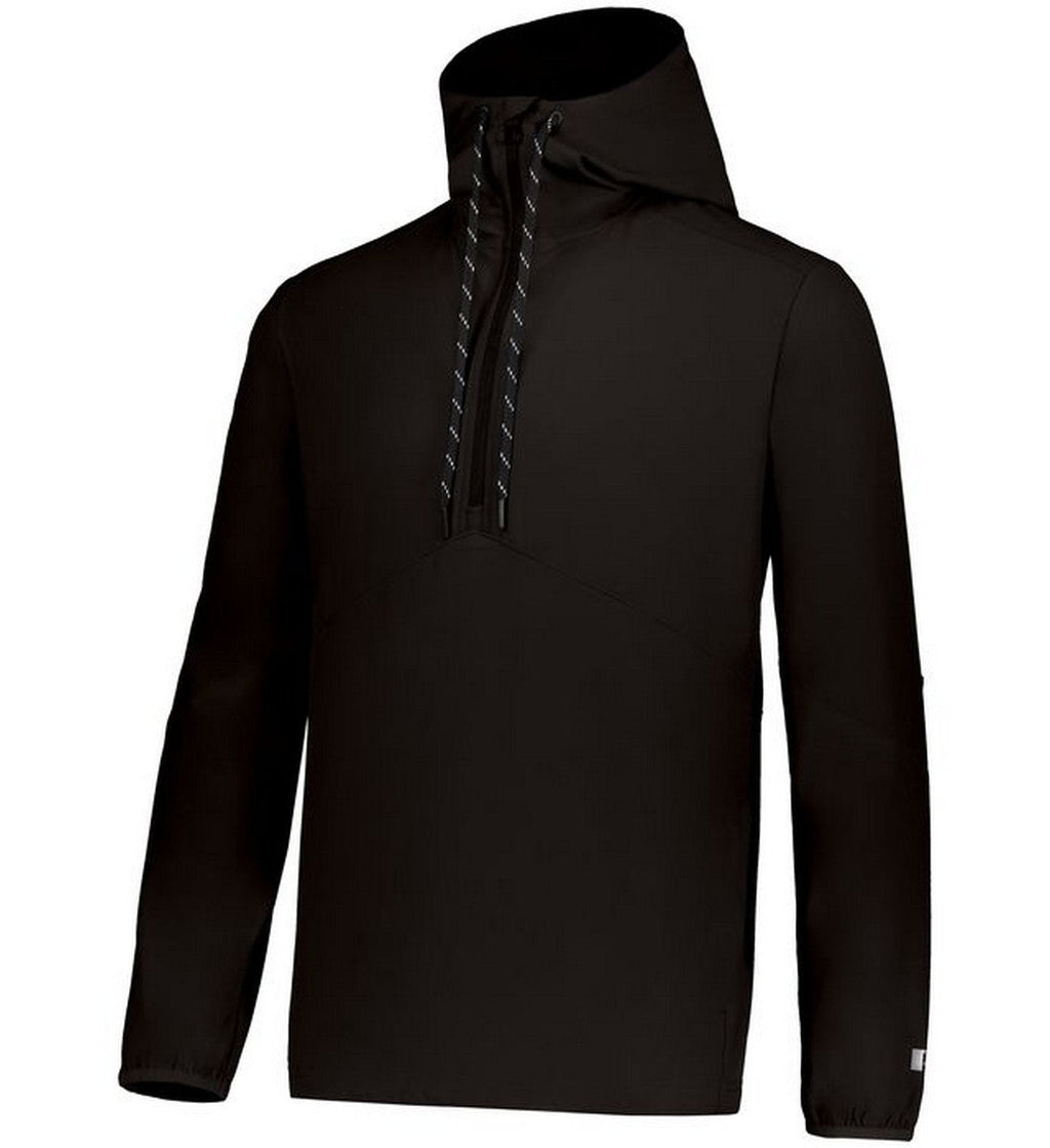 Its 3-piece hood with drawcord allows for adjustable coverage, while set-in sleeves offer a comfortable fit. The pullover also features side zippered pockets and an inside mesh valuables pocket for secure storage. Finished with spandex-bound cuffs and an open bottom, it ensures a snug, comfortable fit. Water-resistant and available in various sizes, this pullover is ideal for coaches and athletes, aligning with Russell Athletic's commitment to providing quality teamwear.